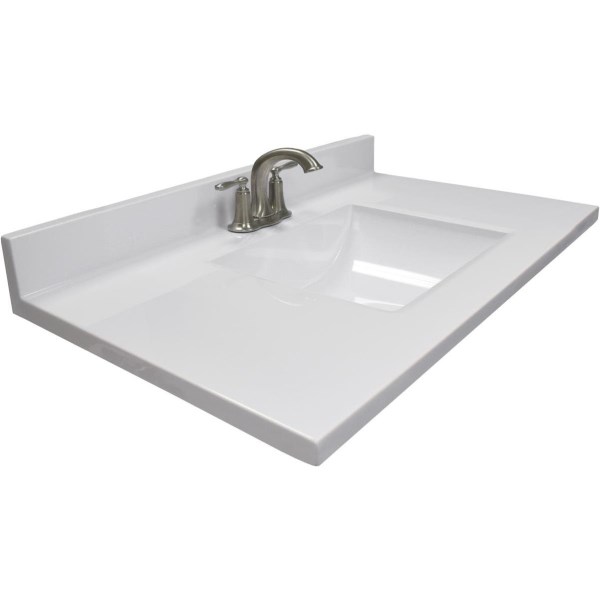 Modular Vanity Tops 37 In. W x 22 In. D Solid White Cultured Marble Vanity Top with Rectangular Wave Bowl