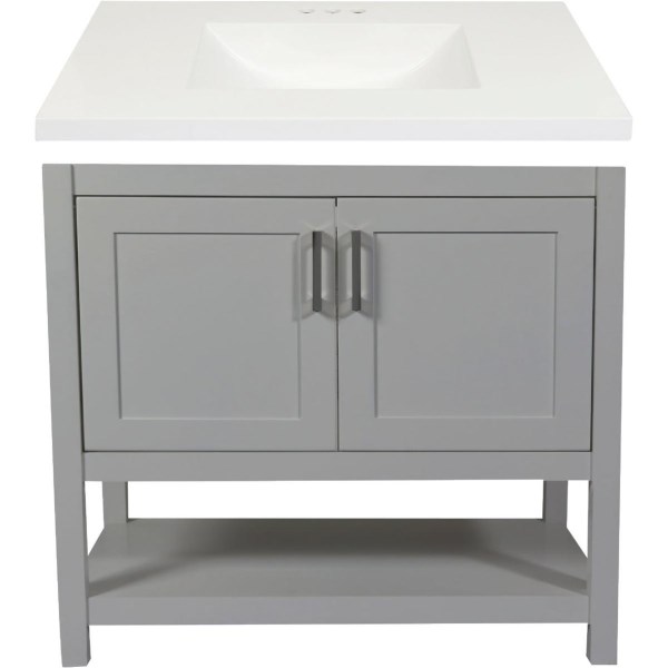 Modular Monaco Gray 36 In. W x 21 In. D x 34-1/2 In. H Vanity with White Cultured Marble Top
