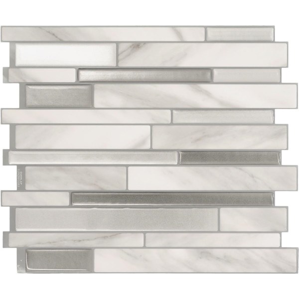 Smart Tiles Approx. 10 In. x 10 In. Glass-Like Vinyl Backsplash Peel & Stick, Milano Carrera Mosaic (4-Pack)