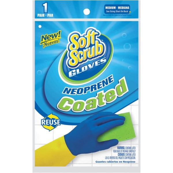 Soft Scrub Medium Neoprene Coated Latex Rubber Glove