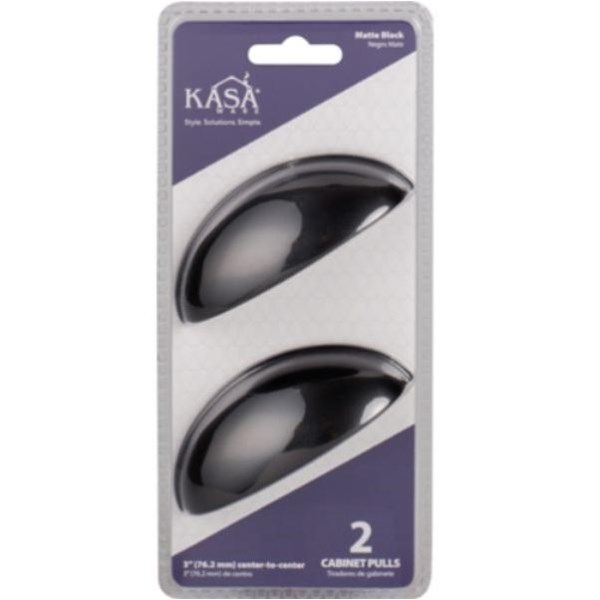 KasaWare 3-11/16 In. L. Matte Black 3 In. Center-to-Center Cup Pull (2-Pack)