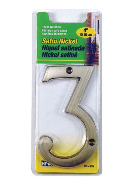 Hy-Ko Prestige Series 4 In. Satin Nickel House Number Three