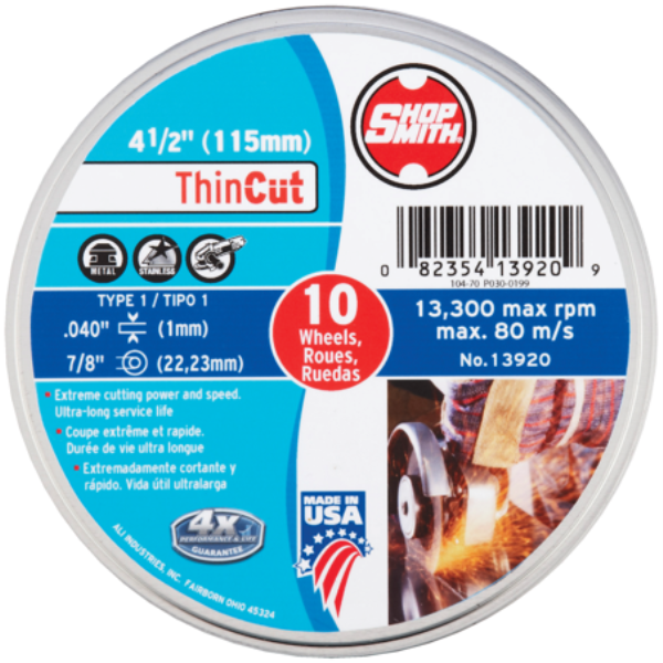 Gator Blade ThinCut Type 1 4-1/2 In. x 0.047 In. x 7/8 In. Metal/Stainless Cut-Off Wheel (10-Pack)