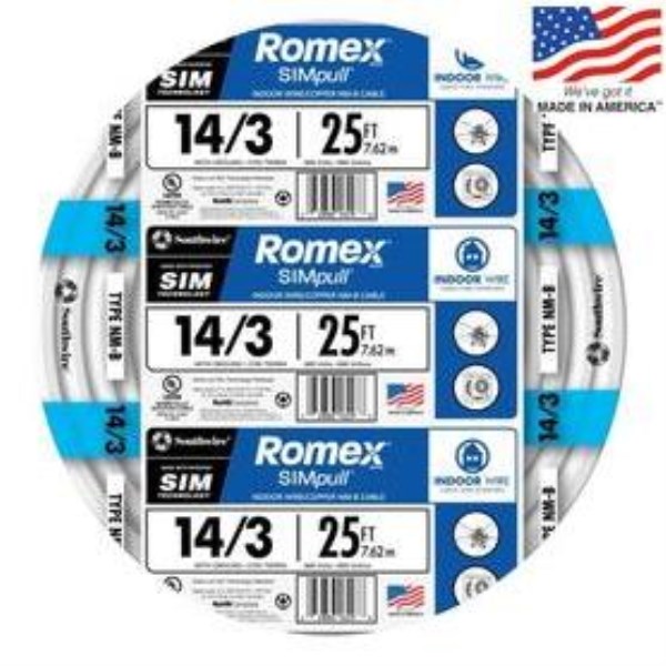 Romex 25 Ft. 14/3 Solid White NMW/G Electrical Wire