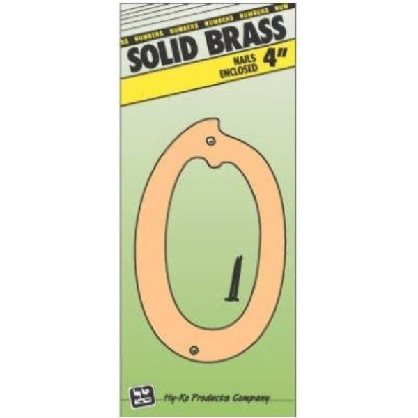Hy-Ko 4 In. Polished Brass House Number Zero