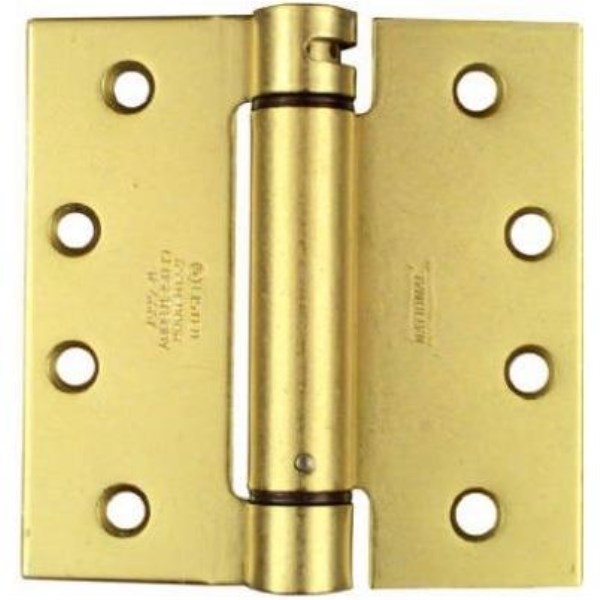 National 4 In. Square Satin Brass Spring Door Hinge