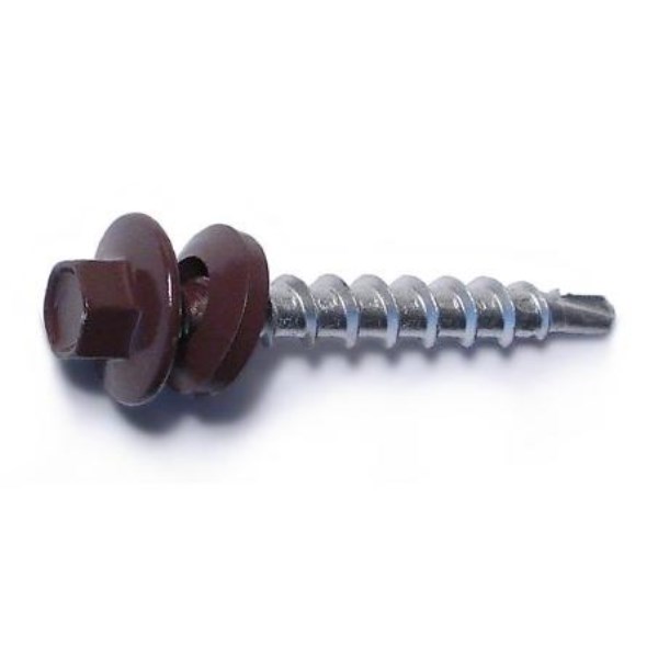 #10 x 1-1/2 Brown Painted Steel Hex Washer Head Pole Barn Self-Drilling Screws