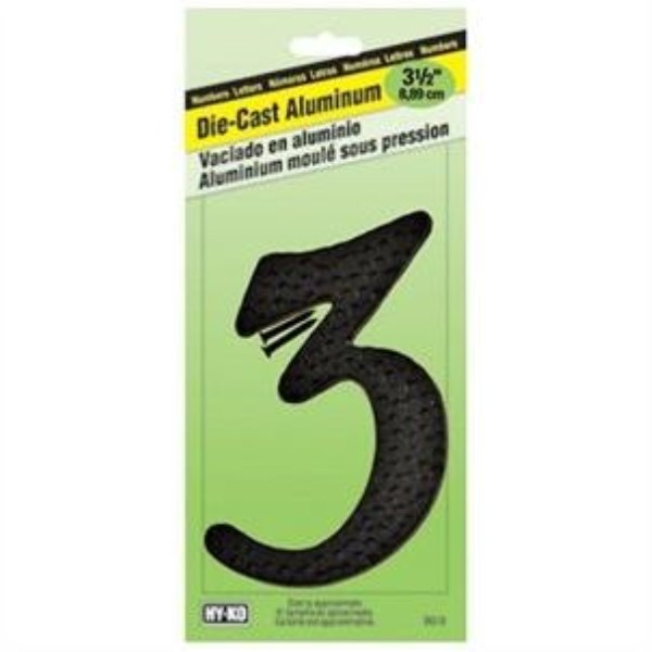 Hy-Ko 3-1/2 In. Black Hammered House Number Three