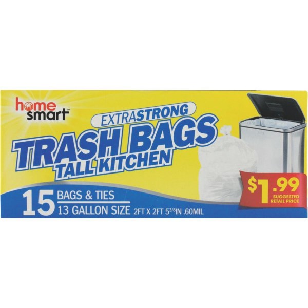 Home Smart 13 Gal. Tall Kitchen White Trash Bag (15-Count)