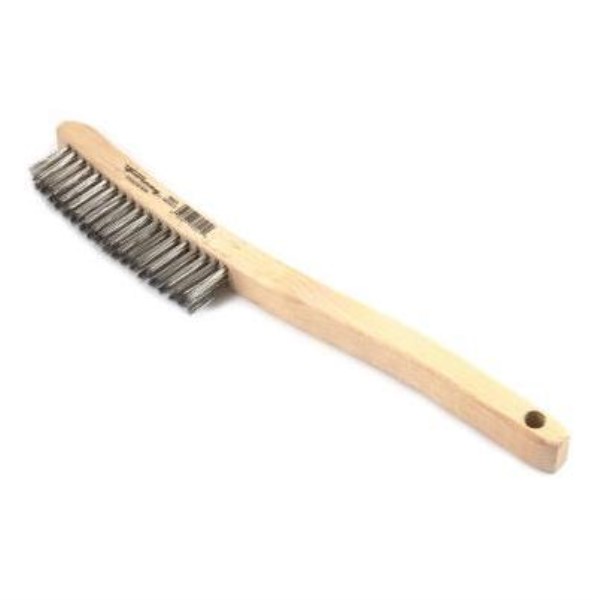 Forney 13-3/4 In. Curved Wood Handle Wire Brush with Stainless Steel Bristles