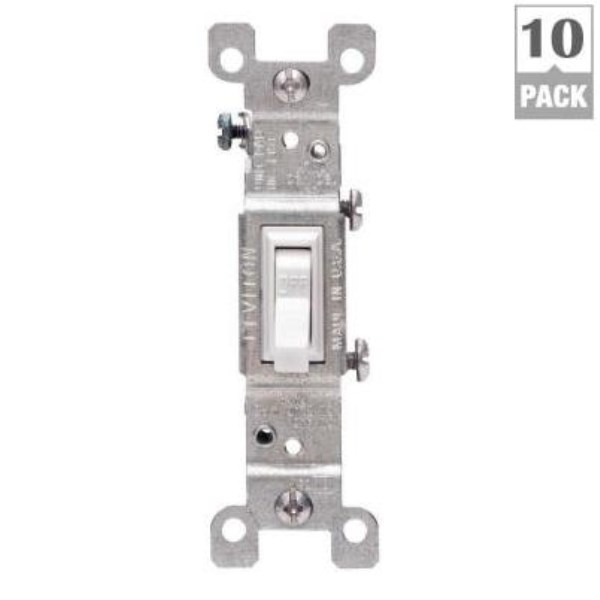 Leviton Residential Grade 15 Amp Toggle Single Pole Grounded Switch, White, (10-Pack)