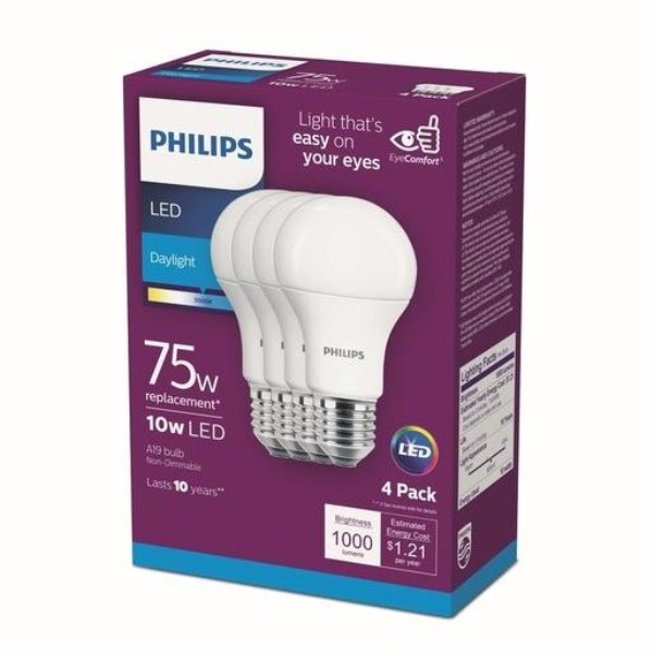 Philips EyeComfort 75W Equivalent Daylight A19 Medium LED Light Bulb (4-Pack)