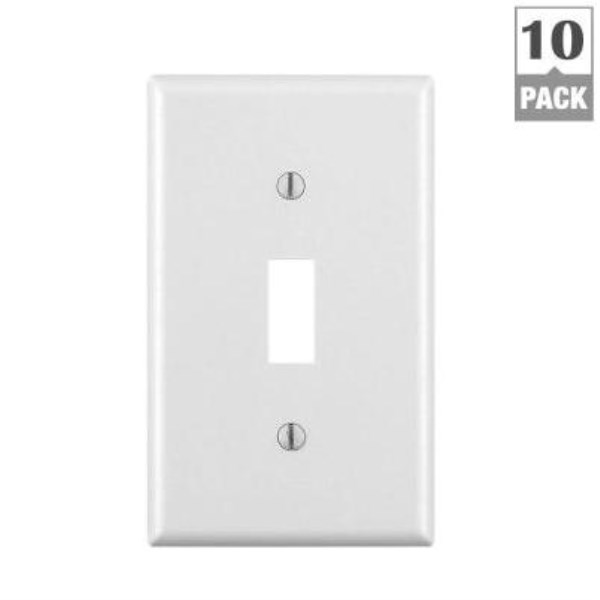 Leviton 1-Gang Plastic Toggle Switch Wall Plate, White (10-Pack)