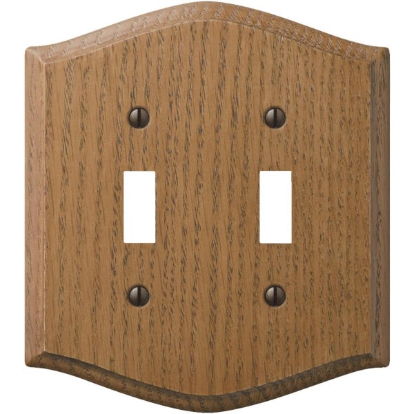 Amerelle Country 2-Gang Solid Oak Toggle Switch Wall Plate, Medium Oak