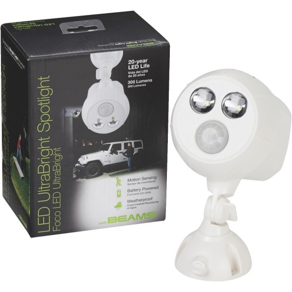 Mr. Beams UltraBright 300-Lumen White Motion Sensing/Dusk-To-Dawn Spotlight Outdoor Battery Operated LED Light Fixture