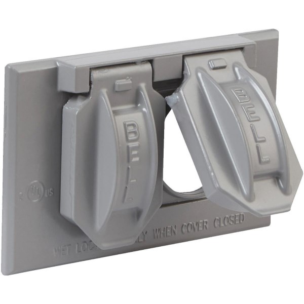 Bell Horizontal Mount Duplex Aluminum Gray Weatherproof Outdoor Outlet Cover