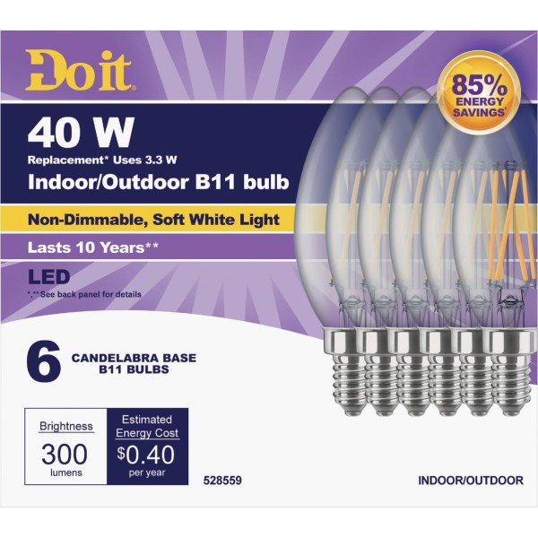 Do it 40W Equivalent Soft White B11 Candelabra LED Decorative Light Bulb (6-Pack)