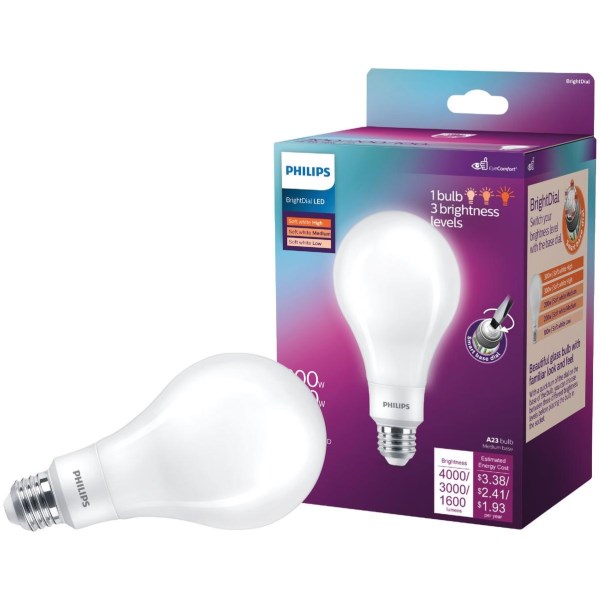 Philips BrightDial 300/200/100W Equivalent Soft White A23 Medium LED Light Bulb