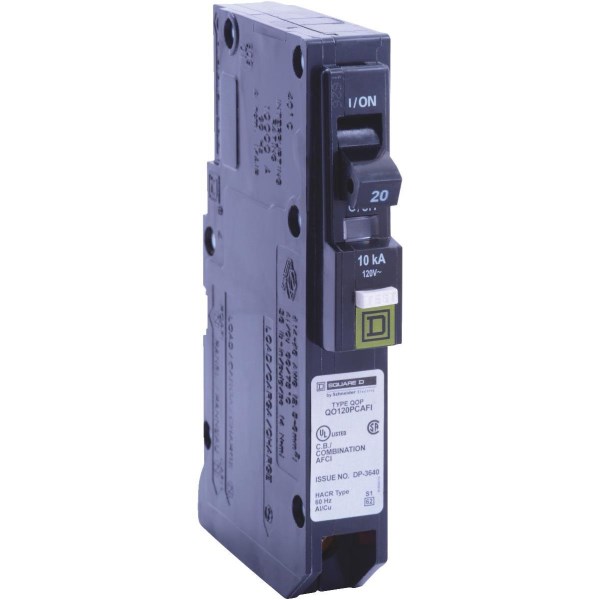 Square D QO 20A Single-Pole CAFCI Mini Dual Function Circuit Breaker