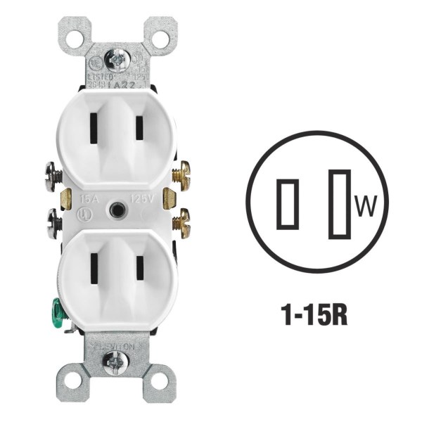 Leviton 15A White Residential Grade 1-15R Duplex Outlet