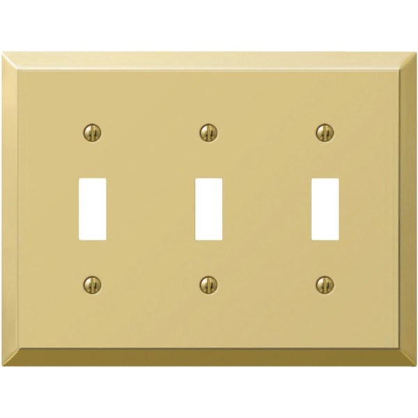 Amerelle 3-Gang Stamped Steel Toggle Switch Wall Plate, Polished Brass