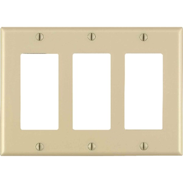 Leviton Decora 3-Gang Smooth Plastic Rocker Decorator Wall Plate, Ivory