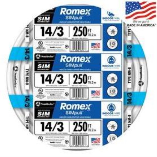Romex 250 Ft. 14/3 Solid White NMW/G Electrical Wire