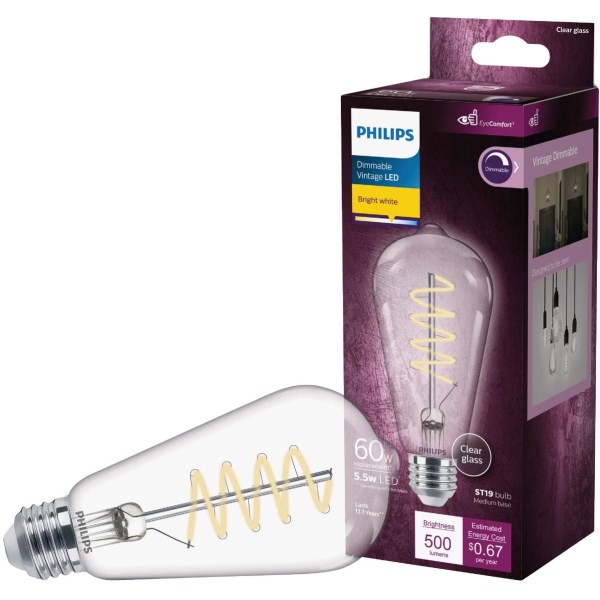 Philips 60W Equivalent Bright White ST19 Medium Dimmable Vintage LED Decorative Light Bulb