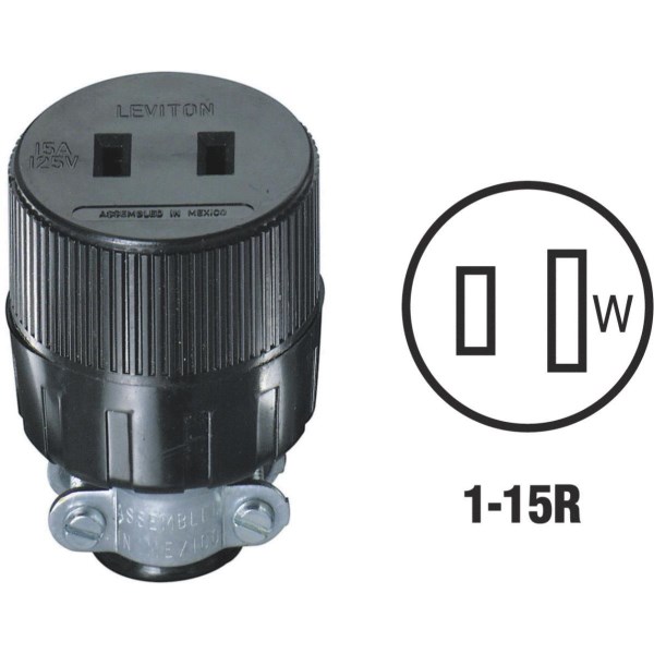 Leviton 15A 125V 2-Wire 2-Pole Round Cord Connector
