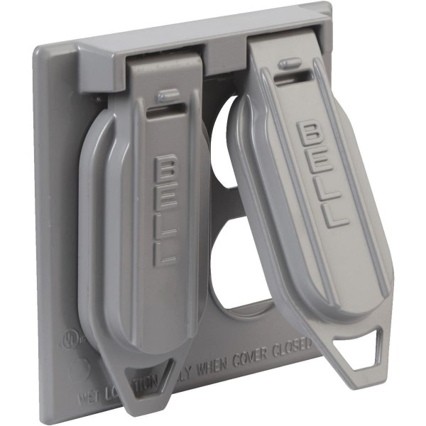 Bell 2-Gang Vertical Mount Die-Cast Metal Gray Weatherproof Outdoor Outlet Cover