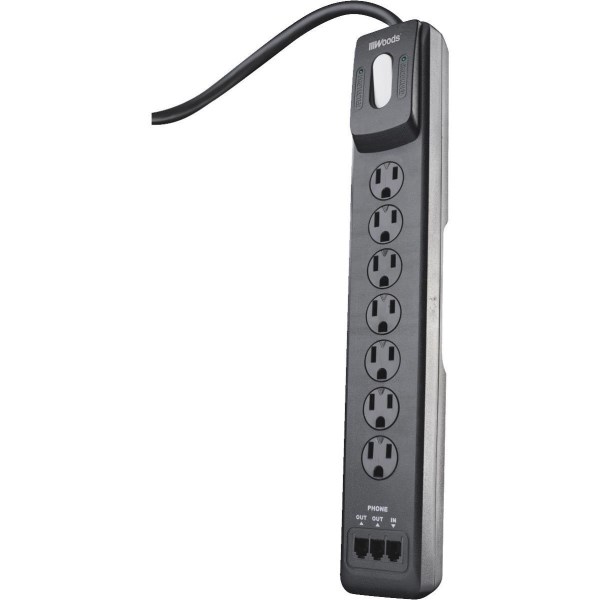 Woods 7-Outlet 1780J Black Resettable Surge Protector Strip with 4 Ft. Cord