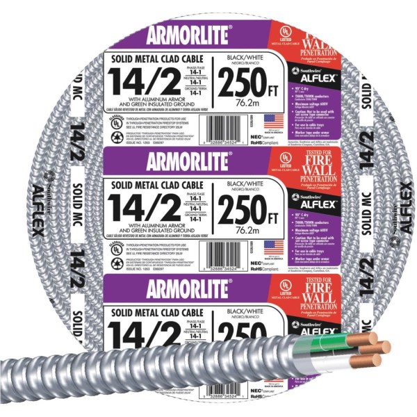 Southwire 250 Ft. 14/2 MC Armored Cable Electrical Wire