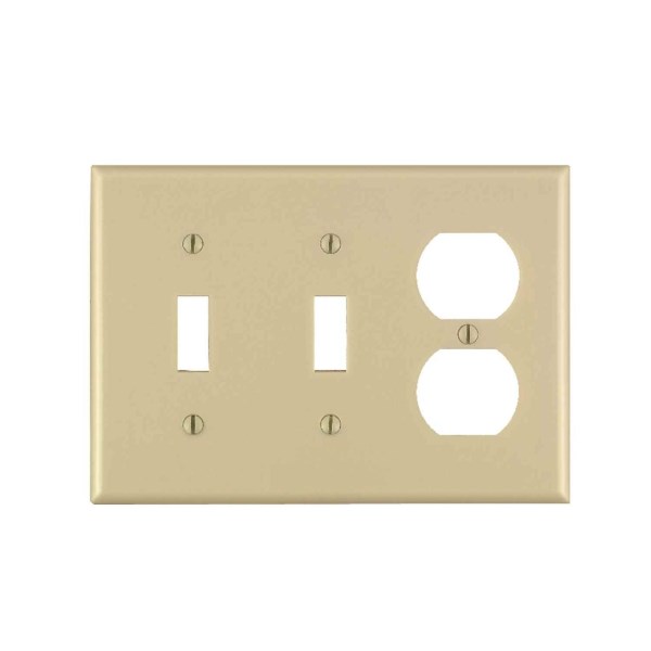 Leviton 3-Gang Plastic 2-Toggle/Duplex Outlet Wall Plate, Ivory