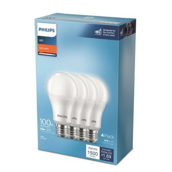Philips EyeComfort 100W Equivalent Soft White A19 Medium LED Light Bulb (4-Pack)