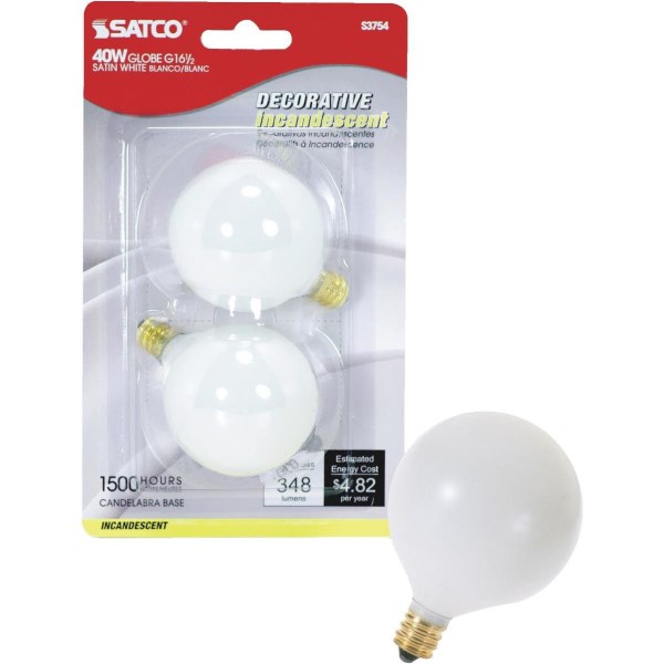 Satco 40W Frosted Candelabra Base G16.5 Incandescent Globe Light Bulb (2-Pack)