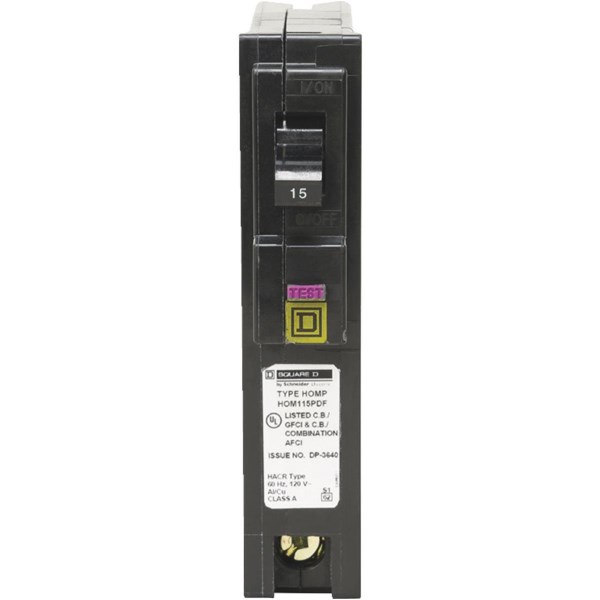 Square D Homeline 15A Single-Pole CAFCI Plug-On Neutral Dual Function Circuit Breaker