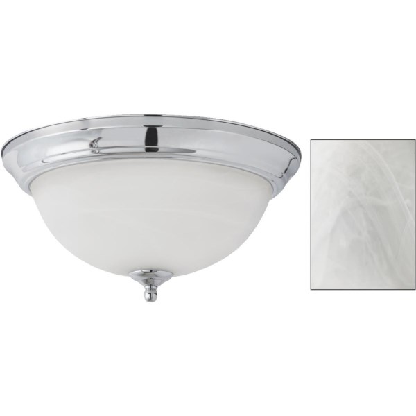 Home Impressions 13 In. Chrome Flush Mount Incandescent Ceiling Light Fixture with Alabaster Glass