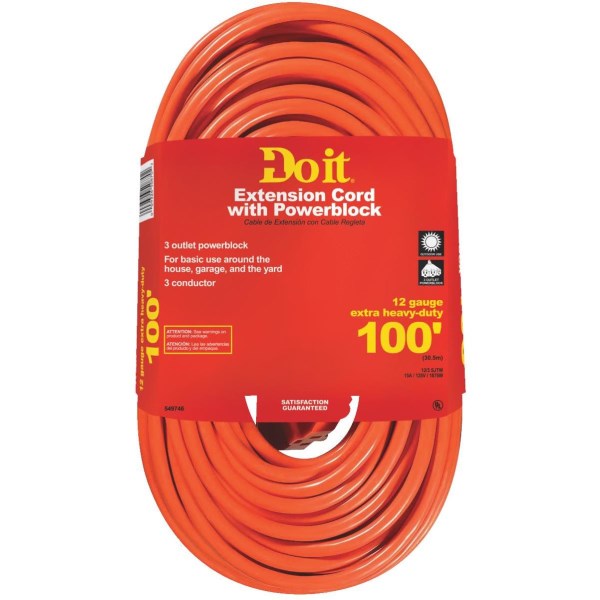 Do it 100 Ft. 12/3 Extension Cord with Powerblock