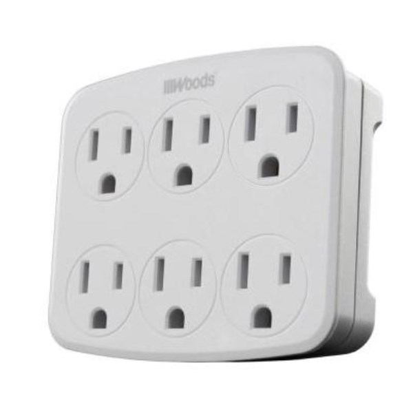 Woods White 15A 6-Outlet Tap