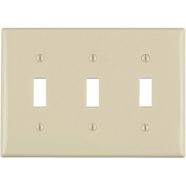 Leviton 3-Gang Thermoplastic Nylon Toggle Switch Wall Plate, Light Almond