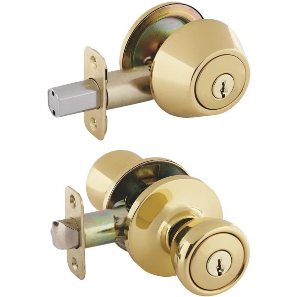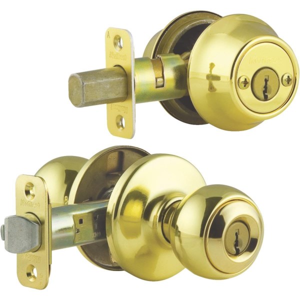 Kwikset Bright Brass Deadbolt and Door Knob Combo