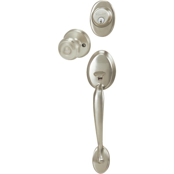 Schlage Satin Nickel Entry Door Handleset with Georgian Knob