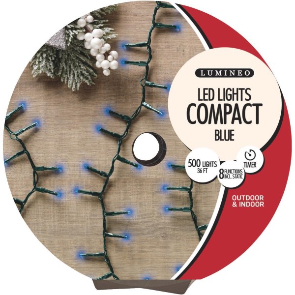 Lumineo Blue 500-Bulb LED Compact Light Set with Dark Green Wire