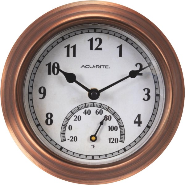 Acurite 8.5 In. Brushed Copper Wall Clock/Thermometer
