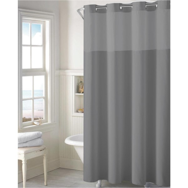SureFit 71 In. x 74 In. Solid Frost Gray Microfiber Hookless Shower Curtain with PEVA Liner