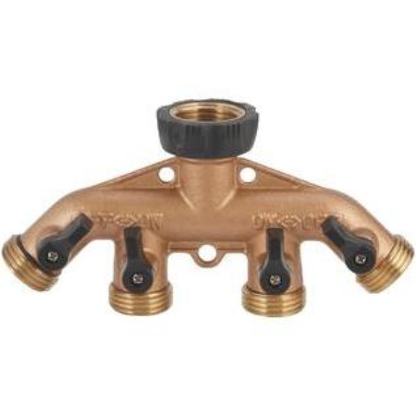 Best Garden Brass 4-Way Hose Shutoff Manifold