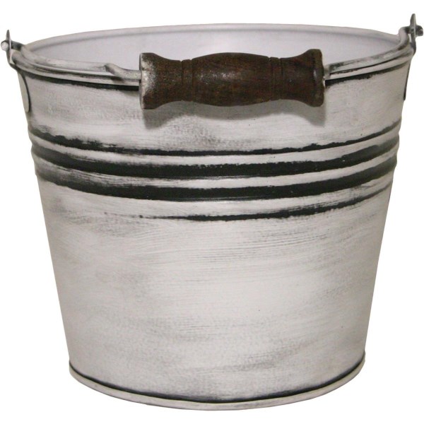 Robert Allen Vintage 6 In. Rustic White Banded Galvanized Metal Planter