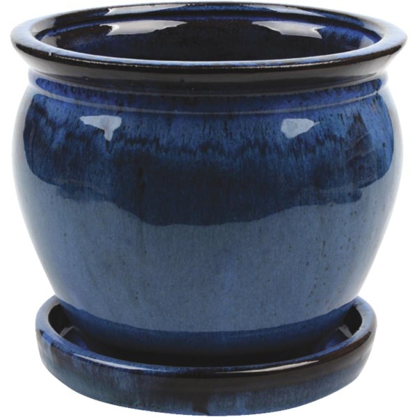 Southern Patio Wisteria 6 In. Dia. x 5.3 In. H. Dripping Blue Clay Planter