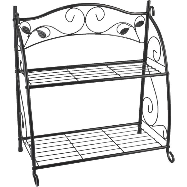 Best Garden Black Powder-Coat Steel 24 In. H. 2-Shelf Indoor/Outdoor Plant Stand