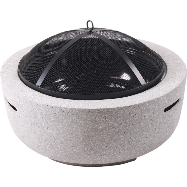 23 In. Round Charcoal/Wood/Pellet Fire Pit, Light Gray